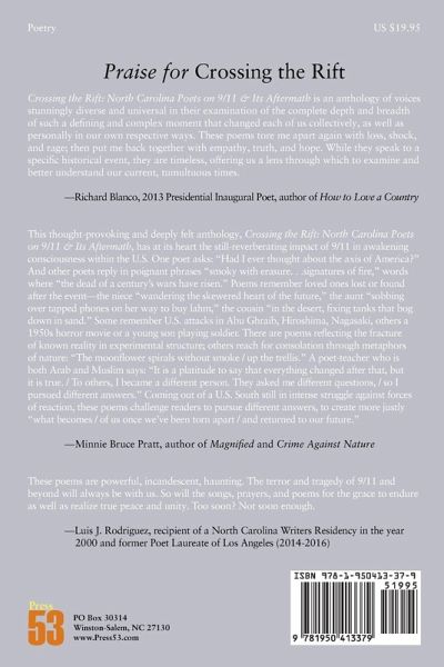 No matter how you were touched by the events of September 11, 2001, that moment continues to resonate. Crossing the Rift: North Carolina Poets on 9/11 & Its Aftermath illuminates not only what happened that day, but what continues to challenge us twenty years later: Islamophobia, the vilification of refugees and asylum-seekers, nationalism, supercharged military budgets, and rises in virulent racism and domestic terrorism. Edited by former North Carolina poet laureate Joseph Bathanti and 9/11 family member and former literature and theater director for the North Carolina Arts Council David Potorti, Crossing the Rift takes head-on what Carolyn Forche calls "the poetry of witness" and its advocacy "for a shared sense of humanity and collective resistance."