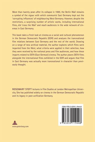 More than twenty years after its collapse in 1989, the Berlin Wall remains a symbol of the vigour with which communist East Germany kept out the 'corrupting influences' of neighbouring West Germany. However, despite the restrictions, a surprising number of artistic works, including international films, did 'cross the Wall' and reach audiences in the wide network of cinemas in East Germany.