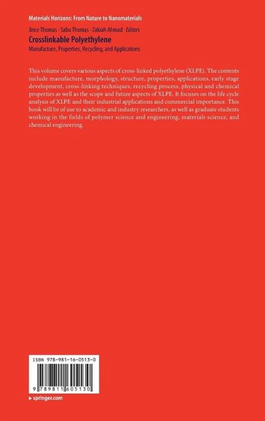 This volume covers various aspects of cross-linked polyethylene (XLPE). The contents include manufacture, morphology, structure, properties, applications, early stage development, cross-linking techniques, recycling process, physical and chemical properties as well as the scope and future aspects of XLPE. It focuses on the life cycle analysis of XLPE and their industrial applications and commercial importance. This book will be of use to academic and industry researchers, as well as graduate students working in the fields of polymer science and engineering, materials science, and chemical engineering.