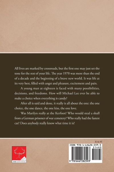 All lives are marked by crossroads, but the first one may just set the tone for the rest of your life. The year 1970 was more than the end of a decade and the beginning of a brave new world. It was life at its very best, filled with angst and pleasure, excitement and pain. A young man at eighteen is faced with many possibilities, decisions, and freedoms. How will Michael Lee ever be able to make a choice when everything is candy? After all is said and done, it really is all about the one: the one choice, the one dance, the one kiss, the one love. Was Marilyn really at the Kerfoot? Who would steal a skull from a German prisoner of war cemetery? Who really had the fastest car? Does anybody really know what time it is?