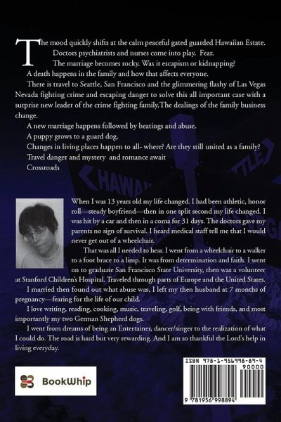 The mood quickly shifts at the calm peaceful gated guarded Hawaiian Estate. Doctors psychiatrists and nurses come into play. Fear. The marriage becomes rocky. Was it escapism or kidnapping? A death happens in the family and how that affects everyone. There is travel to Seattle, San Francisco and the glimmering flashy of Las Vegas Nevada fighting crime and escaping danger to solve this all important case with a surprise new leader of the crime fighting family.The dealings of the family business change. A new marriage happens followed by beatings and abuse. A puppy grows to a guard dog. Changes in living places happen to all- where? Are they still united as a family? Travel danger and mystery and romance await Crossroads