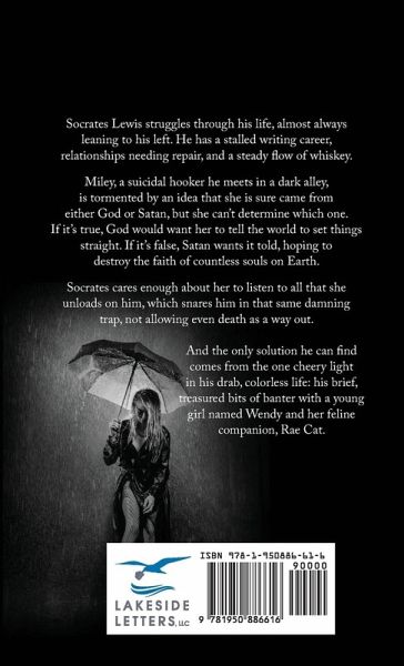 Socrates Lewis struggles through his life, almost always leaning to his left. He has a stalled writing career, relationships needing repair, and a steady flow of whiskey. Miley, a suicidal hooker he meets in a dark alley, is tormented by an idea that she knows came from either God or Satan, but she can't determine which one. If it's true, God would want her to tell the world to set things straight. If it's false, Satan wants it told, hoping to destroy the faith of countless souls on Earth. Socrates cares enough about her to listen to all that she unloads on him, which snares him in that same damning trap, not allowing even death as a way out. And the only solution he can find comes from the one cheery light in his drab, colorless life: his brief, treasured bits of banter with a young girl named Wendy.