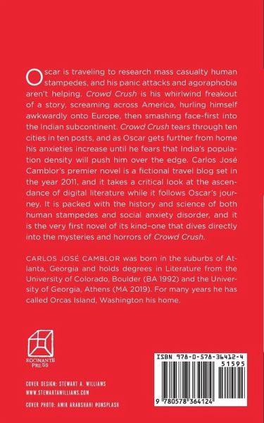 Oscar is traveling to research mass casualty human stampedes, and his panic attacks and agoraphobia aren't helping.Crowd Crush is his whirlwind freakout of a story, screaming across America, hurling himself awkwardly onto Europe, then smashing face-first into the Indian subcontinent. Crowd Crush tears through ten cities in ten posts, and as Oscar gets further from home his anxieties increase until he fears that India's population density will push him over the edge. Carlos José Camblor's premier novel is a fictional travel blog set in the year 2011, and it takes a critical look at the ascendance of digital literature while it follows Oscar's journey. It is packed with the history and science of both human stampedes and social anxiety disorder, and it is the very first novel of its kind-one that dives directly into the mysteries and horrors of Crowd Crush.