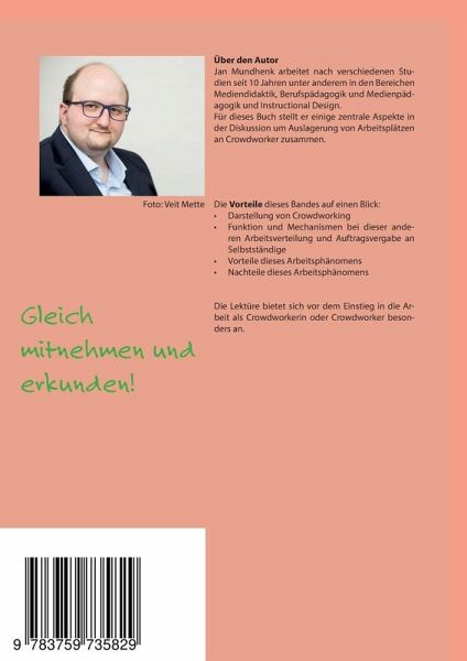 Die Vorteile dieses Bandes auf einen Blick: Darstellung von Crowdworking, Funktion und Mechanismen bei dieser anderen Arbeitsverteilung und Auftragsvergabe an Selbstständige, Vorteile dieses Arbeitsphänomens und Nachteile dieses Arbeitsphänomens. Die Lektüre bietet sich vor dem Einstieg in die Arbeit als Crowdworkerin oder Crowdworker besonders an.