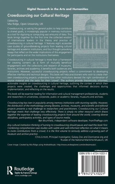 Crowdsourcing, or asking the general public to help contribute to shared goals, is increasingly popular in memory institutions as a tool for digitising or computing vast amounts of data. This book brings together for the first time the collected wisdom of international leaders in the theory and practice of crowdsourcing in cultural heritage. It features eight accessible case studies of groundbreaking projects from leading cultural heritage and academic institutions, and four thought-provoking essays that reflect on the wider implications of this engagement for participants and on the institutions themselves. This book will be essential reading for information and cultural management professionals, students and researchers in universities, corporate, public or academic libraries, museums and archives.