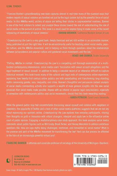 While the general public may feel uncomfortable discussing sexual assault and violence with neighbors or coworkers, the popularity of Twitter, Snapchat, and a host of other social media platforms suggests that we are not shy about expressing our opinions online. Debates that just a few years ago would have taken place in real life have been relocated online; allowing eager commenters to share their thoughts on guilt or innocence with legions of virtual strangers. Crowdsourcing the Law explores how everyday participants interpret and apply law in the influential online court of public opinion. Engaging a multidisciplinary, case study approach, the book analyzes social media comments about public figures such as Bill Cosby, Brock Turner, and Harvey Weinstein to address ambitious questions like: How are rape myths being challenged, reinforced, and reinvented on social media? What is the promise and peril of the #MeToo movement for transforming the law? And can due process be afforded in the face of an increasingly powerful virtual jury?