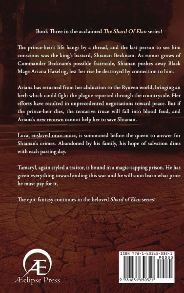 The prince-heir's life hangs by a thread, and the last person to see him conscious was the king's bastard, Shianan Becknam. As rumor grows of Commander Becknam's possible fratricide, Shianan pushes away Black Mage Ariana Hazelrig, lest her rise be destroyed by connection to him. Ariana has returned from her abduction to the Ryuven world, bringing an herb which could fight the plague reported through the countryside. Her efforts have resulted in unprecedented negotiations toward peace. But if the prince-heir dies, the tentative truce will fall into blood feud, and Ariana's new renown cannot help her to save Shianan. Luca, enslaved once more, is summoned before the queen to answer for Shianan's crimes. Abandoned by his family, his hope of salvation dims with each passing day. Tamaryl, again styled a traitor, is bound in a magic-sapping prison. He has given everything toward ending this war-and he will soon learn what price he must pay for it. ¿¿¿¿¿¿¿The epic fantasy continues in the beloved Shard of Elan series!
