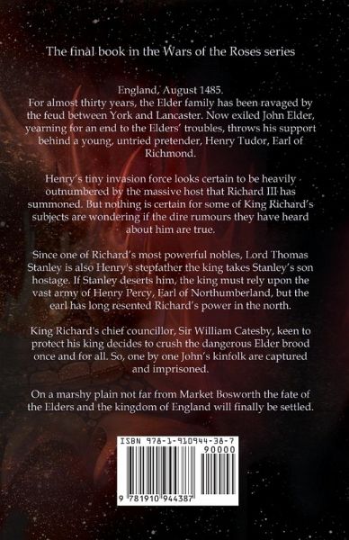 England, August 1485. For almost thirty years, the Elder family has been ravaged by the feud between York and Lancaster. Now exiled John Elder, yearning for an end to the Elders' troubles, throws his support behind a young, untried pretender, Henry Tudor, Earl of Richmond. Henry's tiny invasion force looks certain to be heavily outnumbered by the massive host that Richard III has summoned. But nothing is certain for some of King Richard's subjects are wondering if the dire rumours they have heard about him are true. Since one of Richard's most powerful nobles, Lord Thomas Stanley is also Henry's stepfather the king takes Stanley's son hostage. If Stanley deserts him, the king must rely upon the vast army of Henry Percy, Earl of Northumberland, but the earl has long resented Richard's power in the north. King Richard's chief councillor, Sir William Catesby, keen to protect his king decides to crush the dangerous Elder brood once and for all. So, one by one John's kinfolk are captured and imprisoned. On a marshy plain not far from Market Bosworth the fate of the Elders and the kingdom of England will finally be settled.