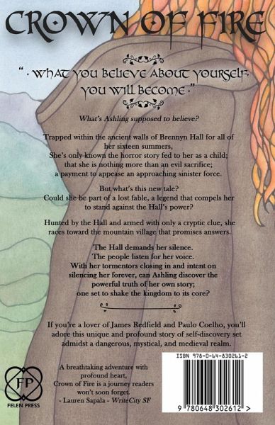 "What you believe about yourself, you will become." What's Ashling supposed to believe? Trapped within the ancient walls of Brennyn Hall for all of her sixteen summers, she's only known the horror story fed to her as a child; that she's nothing more than an evil sacrifice; a payment to appease an approaching sinister force. But what's this new tale? Could she be part of a lost fable, a legend that compels her to stand against the Hall's power? Hunted by the Hall, and armed only with a cryptic clue, she races toward the mountain village that promises answers. The Hall demands her silence. The people listen for her voice. With her tormentors closing in and intent on silencing her forever, can Ashling discover the powerful truth of her own story; one set to shake the kingdom to its core? ¿¿If you love James Redfield and Paulo Coelho, you'll adore this unique and profound story of self-discovery, set amidst a dangerous, mystical, and medieval realm. * "A breathtaking adventure with profound heart, Crown of Fire is a journey readers won't soon forget." - Lauren Sapala, The INFJ Writer, *"Powerful, profound and unique, Crown of Fire will keep you reading from page one until its triumphant end." - Rebecca Hendry, author Grace River