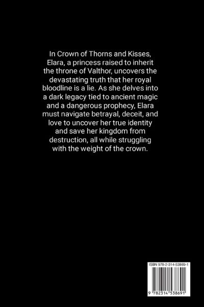 In the kingdom of Valthor, where power is inherited through bloodlines and royal secrets lie hidden beneath centuries of tradition, Elara has always believed herself to be the heir to the throne. Raised in the lavish halls of the palace, she is the daughter of King Aldric and Queen Helene, destined to rule a kingdom steeped in history and honor. But when Elara uncovers a hidden truth, her world shatters. She is not who she thought she was. Raelan, a mysterious figure with ties to a forgotten past, reveals the unthinkable: Elara's royal lineage is a lie, and her true heritage is far darker than she could have imagined. As she delves deeper into the secrets of her bloodline, she finds herself caught in a dangerous web of deceit, betrayal, and long-forgotten magic. The truth is buried in the shadows of history, guarded by forces more powerful and deadly than she could ever have anticipated. As Elara uncovers the hidden legacy of her ancestors, she is forced to confront her own identity and the prophecy that has been written in the stars for centuries. A prophecy that binds her fate to the rise of an ancient power-one that could either save her kingdom or destroy it forever. In a world where nothing is as it seems, Elara must decide who she can trust, what sacrifices she is willing to make, and whether love can survive the weight of a crown built on lies.