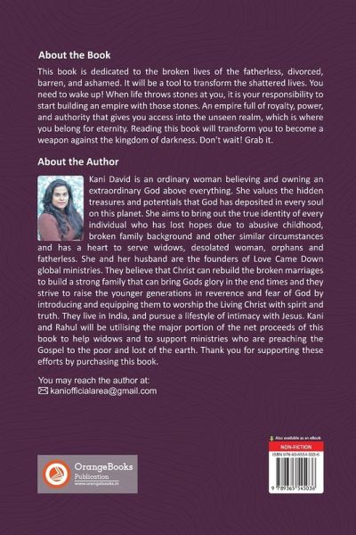 This Book Is Dedicated To The Broken Lives, Fatherless, Divorced, Barren And The Ashamed. It Will Be A Tool To Transform The Shattered Lives. You Need To Wake Up! When Life Throws Stones At You, It Is Your Responsibility To Start Building An Empire With Those Stones. An Empire Full Of Royalty, Power And Authority Which Gives You The Access Into The Unseen Realm Which Is Where You Belong For Eternity. Reading This Book Will Transform You To Become A Weapon Against The Kingdom Of Darkness. Don't Wait! Grab It.