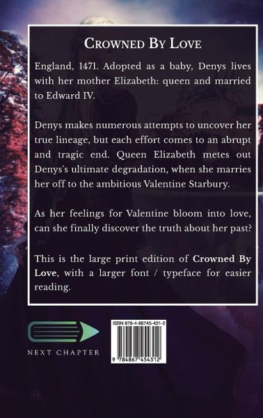 England, 1471. Adopted as a baby, Denys lives with her mother Elizabeth: queen and married to Edward IV. Denys makes numerous attempts to uncover her true lineage, but each effort comes to an abrupt and tragic end. Queen Elizabeth metes out Denys's ultimate degradation, when she marries her off to the ambitious Valentine Starbury. As her feelings for Valentine bloom into love, can she finally discover the truth about her past? This is the large print edition of Crowned By Love, with a larger font / typeface for easier reading.¿