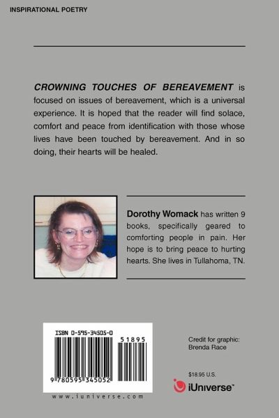 CROWNING TOUCHES OF BEREAVEMENT is focused on issues of bereavement, which is a universal experience. It is hoped that the reader will find solace, comfort and peace from identification with those whose lives have been touched by bereavement. And in so doing, their hearts will be healed.
