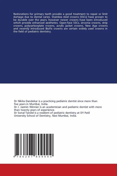 Restorations for primary teeth provide a good treatment to repair or limit damage due to dental caries. Stainless steel crowns (SSCs) have proven to be durable over the years; however newer crowns have been introduced which provide enhanced aesthetics. Open-face SSCs, zirconia crowns, strip crowns, polycarboxylate crowns, acrylic jacket crowns, New Age crowns and recently introduced BioFlx crowns are certain widely used crowns in the field of pediatric dentistry.
