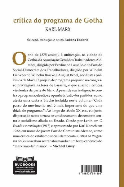 Em 1875, Marx encaminhou à cidade de Gotha um conjunto de observações críticas ao programa do futuro Partido Social-Democrata da Alemanha, resultado da unificação dos dois partidos operários alemães: a Associação Geral dos Trabalhadores Alemães, dirigida por Ferdinand Lassalle, e o Partido Social-Democrata dos Trabalhadores, dirigido por Wilhelm Liebknecht, Wilhelm Bracke e August Bebel, socialistas próximos de Marx.O projeto de programa proposto no congresso de união privilegiava as teses de Lassalle, o que suscitou críticas virulentas de Marx em forma de carta direcionada aos dirigentes. Sua oposição devia-se não à fusão dos partidos - quanto a isso era da opinião de que 'cada passo do movimento real é mais importante do que uma dezena de programas' -, mas ao estatismo exacerbado que ganhara espaço nas diretrizes do novo partido.Nem a favor do poder absoluto do Estado proposto por Lassalle, nem da ausência de Estado proposta pelos anarquistas: a proposição de Marx era a 'ditadura revolucionária do proletariado', forma de Estado que teria lugar durante o período de transformação revolucionária que conduziria ao advento da sociedade comunista. Segundo ele, as cooperativas 'só têm valor na medida em que são criações dos trabalhadores e independentes, não sendo protegidas nem pelos governos nem pelos burgueses'.Essas glosas marginais sobre o Programa de Gotha somente foram publicadas em 1891, muito depois da morte de Marx, por Friedrich Engels, na revista socialista Die Neue Zeit, dirigida por Karl Kautsky. Ao longo do século XX, esse conjunto disperso de notas tornou-se documento coerente de combate contra o socialismo aliado ao Estado.Novas luzes também são lançadas sobre outros temas: 'Se lermos esse documento à luz dos debates do século XXI, alguns de seus aspectos ganham novo interesse no contexto dos atuais debates sobre a ecologia. É o caso da afirmação categórica de que o trabalho não é o único gerador de riqueza, a natureza o é tanto quanto ele. Assim, a crítica de muitos ecologistas a Marx - só o trabalho é fonte de valor - revela-se um mal-entendido: o valor de uso, que é a verdadeira riqueza, também é um produto da natureza', afirma o sociólogo Michael Löwy no prefácio da primeira edição em língua portuguesa de Crítica do Programa de Gotha, pela Boitempo. Com amplo material complementar, como diversas cartas de Karl Marx e Friedrich Engels, incluindo a famosa carta deste a August Bebel, de março de 1875, analisada por Lenin em O Estado e a revolução (1917), esta edição situa o texto em seu contexto histórico e traz um dos pronunciamentos mais detalhados de Marx sobre assuntos revolucionários, tendo em vista o comunismo. O volume inclui também as atas do Congresso de Gotha, documentos raríssimos e de grande valor para estudiosos do marxismo. Outra novidade é a inclusão dos comentários de Marx ao livro Estatismo e anarquia, de Mikhail Bakunin, redigidos na mesma época de Crítica do Programa de Gotha. Nesses escritos, Marx rebate as críticas de Bakunin sobre o suposto estatismo marxista e sua proximidade com Lassalle.