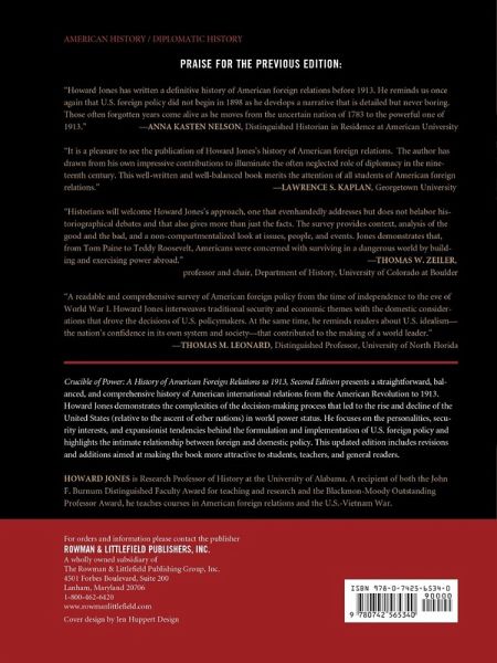 Crucible of Power: A History of American Foreign Relations to 1913 presents a straightforward, balanced, and comprehensive history of American international relations from the American Revolution to 1913. Howard Jones demonstrates the complexities of the decision-making process that led to the rise and decline of the United States (relative to the ascent of other nations) in world power status. Howard Jones focuses on the personalities, security interests, and expansionist tendencies behind the formulation and implementation of U.S. foreign policy and highlights the intimate relationship between foreign and domestic policy. This updated edition includes revisions and additions aimed at making the book more attractive to students, teachers, and general readers.