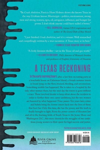 A Texas Reckoning In the early morning hours after a law firm recruiting party at a beachside house on Galveston Island, a female summer intern is found lying on the floor, bruised, bleeding, and unconscious. Something terrible has happened. She is taken to a hospital by the only other woman there, but the next day the intern is gone without a trace. Those involved decide to keep silent about the incident in order to further their own career ambitions, but the two women are haunted by what happened. Time passes. Ten years later, crime and hubris bring the former intern back into the lives of those that hurt her. Only this time, she has the power, and the truth is finally brought to light. From the power centers of Houston law and oil to the fracking fields of South Texas to the Jersey Shore and Washington D.C., this story chronicles the struggles of two ambitious young women in their quest for legal success and justice.