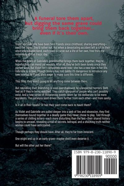 In the shadow of betrayal lies a twisted game of vengeance. An addictive domestic thriller for fans of Gillian Flynn and Alice Feeney. A funeral tore them apart, but digging the same grave could bring them back together... even if it's their own. Violet and Gabrielle have been best friends since childhood, sharing everything-even the things they'd rather not. But when a devastating accident left a rift in their once unbreakable bond, each tried to carve out a life of her own, free from the reminders of that tragic day. When the death of Gabrielle's grandmother brings them back together, they're hopeful they can mend old wounds. After all, they've both been lonely since they parted ways. But Violet isn't completely alone now-she has a new man in her life. Gabrielle is in love. Though history has told Gabby it's dangerous to introduce any love interest to Violet, she's eager to make sure this time is different. This time, they aren't going to let anything come between them. But rekindling their friendship is soon overshadowed by unexpected horrors. Both feel as if they're being watched. They catch glimpses of people who can't possibly exist. And a new series of threatening events seem far too deliberate to be mere accidents. The paranoia soon drives them further from each other-and from sanity. Is it all in their heads? Or has their past come back to haunt them? As Violet and Gabrielle are pulled deeper into a web of lies and obsession, they find themselves bound together in a deadly game they never chose to play. Told through a series of chilling letters-each more disturbing than the last-their shared history begins to unravel, revealing a trail of secrets, betrayal, and a shocking truth neither woman could have anticipated. Though perhaps they should have. After all, they're far from innocent. One might end up in an early grave-maybe she'd even deserve it. But will the other put her there? Cruel Bonds is an unputdownable domestic thriller about love, obsession, and the lengths people will go to in order to protect those they love. It is the first novel in the Between Us series, but all novels in the Between Us world can be read as standalones. If you love unreliable narrators, family secrets, and shocking twists, this addictive epistolary thriller is perfect for fans of Keirsten Modglin, Lucinda Berry, and Freida McFadden.
