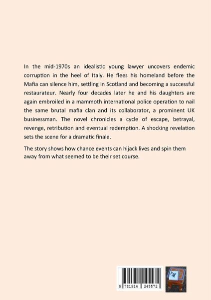 In the mid-1970s an idealistic young lawyer uncovers endemic corruption in the heel of Italy. He flees his homeland before the Mafia can silence him, settling in Scotland and becoming a successful restaurateur. Nearly four decades later he and his daughters are again embroiled in a mammoth international police operation to nail the same brutal mafia clan and its collaborator, a prominent UK businessman. The novel chronicles a cycle of escape, betrayal, revenge, retribution and eventual redemption. A shocking revelation sets the scene for a dramatic finale. The story shows how chance events can hijack lives and spin them away from what seemed to be their set course.