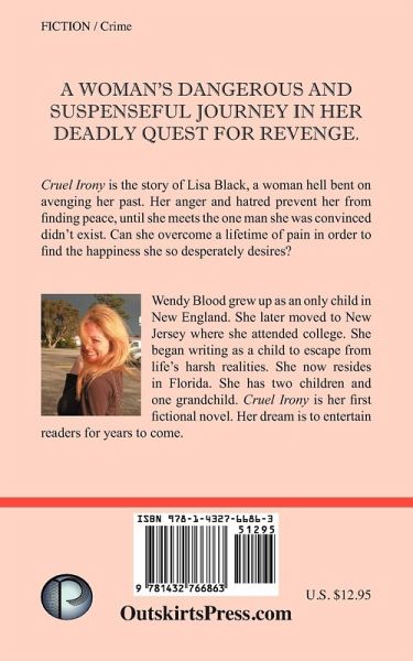 A woman's dangerous and suspenseful journey in her deadly quest for revenge. Lisa Black, a woman with a tragic childhood, lives for revenge. From witnessing her mother's rape to learning that her grandfather had molested her mother when she was growing up. She was abused as a child and felt unloved and abandoned. She began living in her own deadly reality in order to survive. Her heart grows cold and her soul turns black as she grows into a young woman. She turns to gruesome murder to ease the pain caused by others, especially men. She searches for happiness but can't escape the demons of her past. Jake Damino, once a good man with a loving heart, is now a selfish man with no ambition and a passion for sex and drugs. When he and Lisa move to Las Vegas, he turns into a man she no longer recognizes. She thought he would love her forever until his ultimate betrayal. When he and her friend ripped her world apart, she began to live for the day she could destroy them both completely. Michael Wagner, a devastatingly handsome Hollywood movie producer, grew up with the ideal childhood and two loving parents. He becomes hugely successful, and women everywhere desire him. He isn't looking for love; he's too busy with his career, until he unexpectedly meets the one woman who will change his life forever. After months of working on his latest blockbuster movie, he goes on a Hawaiian cruise where he meets Lisa, the woman of his dreams with a past that would become his nightmare. She captivates him in everyway, and it's love at first sight. These three people's lives become intertwined and collide with deadly force. Each brings with them the ghosts from their past, and the fear and insecurities of their future. Life is full of irony, CRUEL IRONY!!!