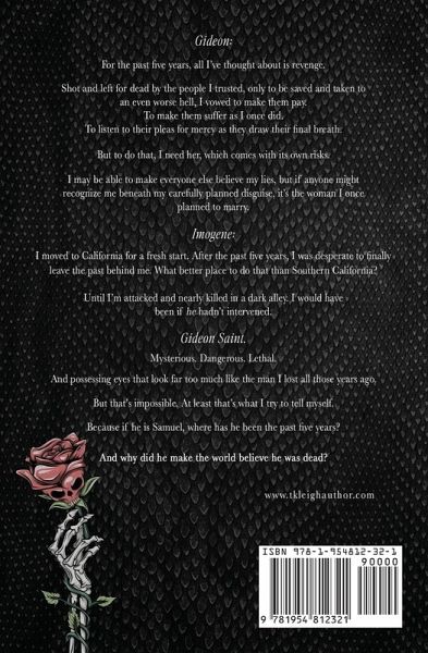Five years ago, he took everything from me. Now I'm going to take everything from him... Starting with her. Gideon: For the past five years, all I've thought about is revenge. Shot and left for dead by the people I trusted, only to be saved and taken to an even worse hell, I vowed to make them pay. To make them suffer as I once did. To listen to their pleas for mercy as they draw their final breath. But to do that, I need her. Which comes with its own risks. I may be able to make everyone else believe my lies, but Imogene's not like everyone else. And if anyone might recognize me beneath my carefully planned disguise, it's the woman I once planned to marry. Imogene: I moved to California for a fresh start. After the past five years, I was desperate to finally leave the past behind me. What better place to do that than Southern California? Until I'm attacked and nearly killed in a dark alley. I would have been if he hadn't intervened. Gideon Saint. Mysterious. Dangerous. Lethal. And possessing eyes that look far too much like the man I lost all those years ago. But that's impossible. Samuel Tate is dead. Apart from those haunting blue eyes, he bears little resemblance to the man I once gave my heart. At least that's what I try to tell myself. Because if he is Samuel, where has he been the past five years? And why did he make the world believe he was dead?