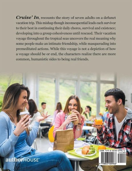 Cruise' In, recounts the story of seven adults on a defunct vacation trip. This mishap though inconsequential leads each survivor to their best in continuing their daily chores, survival and existence; developing into a group cohesiveness until rescued. Their vacation voyage throughout the tropical seas uncovers the real meaning why some people make an intimate friendship, while masquerading into premeditated actions. While this voyage is not a depiction of how a voyage should be or end, the characters realize there are more common, humanistic sides to being real friends.