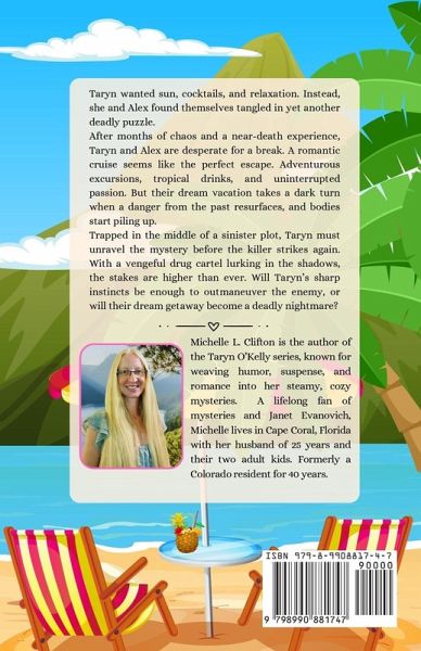 Taryn wanted sun, cocktails, and relaxation. Instead, she and Alex found themselves tangled in yet another deadly puzzle. After months of chaos and a near-death experience, Taryn and Alex are desperate for a break. A romantic cruise seems like the perfect escape. Adventurous excursions, tropical drinks, and uninterrupted passion. But their dream vacation takes a dark turn when a danger from the past resurfaces, and bodies start piling up. Trapped in the middle of a sinister plot, Taryn must unravel the mystery before the killer strikes again. With a vengeful drug cartel lurking in the shadows, the stakes are higher than ever. Will Taryn's sharp instincts be enough to outmaneuver the enemy, or will their dream getaway become a deadly nightmare?