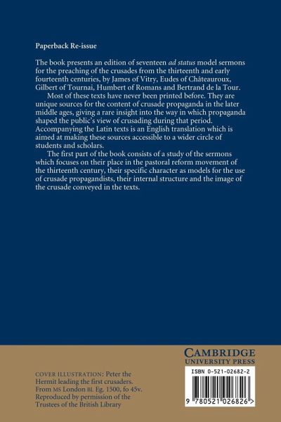 This book presents an edition of seventeen ad status model sermons for the preaching of the crusades from the thirteenth and early fourteenth centuries. The majority of these texts have never been printed before. They are unique sources for the content of crusade propaganda in the later Middle Ages, giving a rare insight into the way in which propaganda shaped the public's view of crusading during that period. Accompanying the Latin texts is an English translation which is aimed at making these sources accessible to a wider circle of students and scholars. The first part of the book consists of a study of these model sermons which focuses on their place in the pastoral reform movement of the thirteenth century, their specific character as models for the use of crusade propagandists, their internal structure, and the image of the crusade conveyed in the texts.