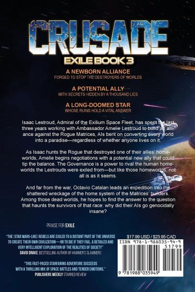 A newborn Alliance, forged to stop the destroyers of worlds A potential ally, with secrets hidden by a thousand lies A long-doomed star, whose ruins hold a vital answer Isaac Lestroud, Admiral of the Exilium Space Fleet, has spent the last three years working with Ambassador Amelie Lestroud to build an alliance against the Rogue Matrices, AIs bent on converting every world into a paradise-regardless of whether anyone lives on it. As Isaac hunts the Rogue that destroyed one of their allies' homeworlds, Amelie begins negotiations with a potential new ally that could tip the balance. The Governance is a power to rival the human homeworlds the Lestrouds were exiled from-but like those homeworlds, not all is as it seems. And far from the war, Octavio Catalan leads an expedition into the shattered wreckage of the home system of the Matrices' builders. Among those dead worlds, he hopes to find the answer to the question that haunts the survivors of that race: why did their AIs go genocidally insane?