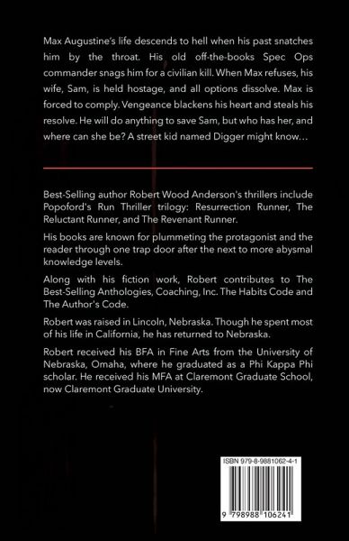 Max Augustine's life descends to hell when his past snatches him by the throat. His old off-the-books Spec Ops commander snags him for a civilian kill. When Max refuses, his wife, Sam, is held hostage, and all options dissolve. Max is forced to comply. Vengence blackens his heart and steals his resolve. He will do anything to save Sam, but who has her, and where can she be? A street kid named Digger might know...