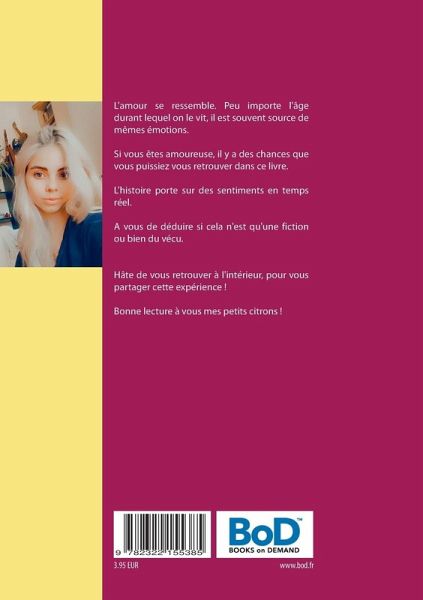 L'amour se ressemble. Peu importe l'âge durant lequel on le vit, il est souvent source de mêmes émotions.Si vous êtes amoureuse, il y a des chances que vous puissiez vous retrouver dans ce livre.L'histoire porte sur des sentiments en temps réel.A vous de déduire si cela n'est qu'une fiction ou bien du vécu.Hâte de vous retrouver à l'intérieur, pour vous partager cette expérience !Bonne lecture à vous mes petits citrons !