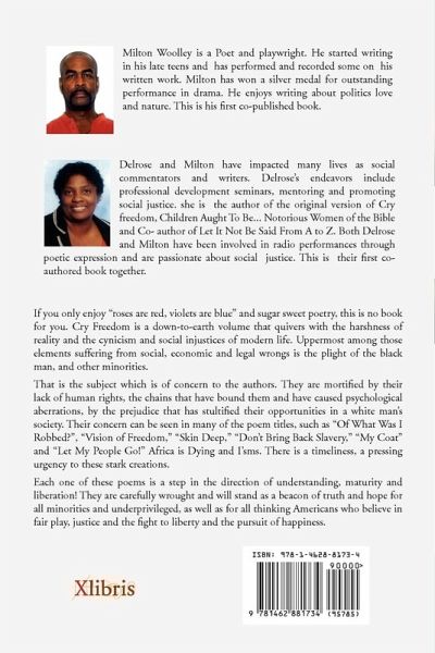 If you only enjoy "roses are red, violets are blue" and sugar sweet poetry, this is no book for you. Cry Freedom is a down-to-earth volume that quivers with the harshness of reality and the cynicism and social injustices of modern life. Uppermost among those elements suffering from social, economic and legal wrongs is the plight of the black man, and other minorities. That is the subject which is of concern to the authors. They are mortified by their lack of human rights, the chains that have bound them and have caused psychological aberrations, by the prejudice that has stultified their opportunities in a white man's society. Their concern can be seen in many of the poem titles, such as "Of What Was I Robbed?", "Vision of Freedom," "Skin Deep," "Don't Bring Back Slavery," "My Coat" and "Let My People Go!" Africa is Dying and I'sms. There is a timeliness, a pressing urgency to these stark creations. Each one of these poems is a step in the direction of understanding, maturity and liberation! They are carefully wrought and will stand as a beacon of truth and hope for all minorities and underprivileged, as well as for all thinking Americans who believe in fair play, justice and the fight to liberty and the pursuit of happiness.
