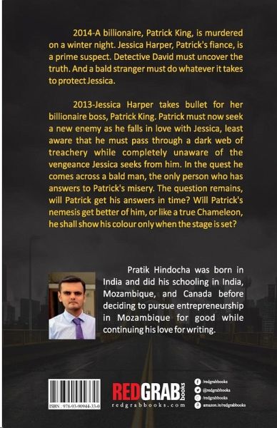 2014-A billionaire, Patrick King, is murdered on a winter night. Jessica Harper, Patrick's fiance, is a prime suspect. Detective David must uncover the truth. And a bald stranger must do whatever it takes to protect Jessica. 2013-Jessica Harper takes bullet for his billionaire boss, Patrick King. Patrick must now seek a new enemy as he falls in love with Jessica, least aware that he must pass through a dark web of treachery while completely unaware of the vengeance Jessica seeks from him. In the quest he comes across a bald man, the only person who has answers to Patrick's misery. The question remains, will Patrick get his answers in time? Will Patrick's nemesis get better of him, or like a true Chameleon, he shall show his colour only when the stage is set?