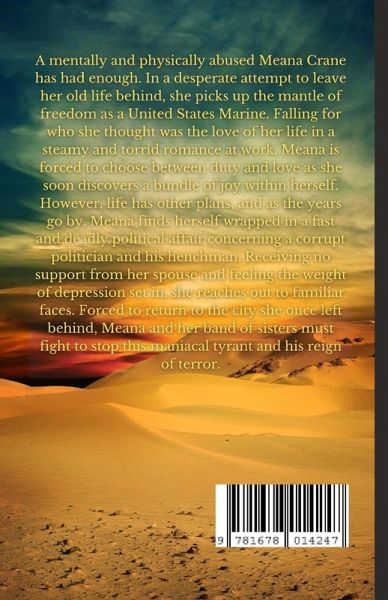 A mentally and physically abused Meana Crane has had enough. In a desperate attempt to leave her old life behind, she picks up the mantle of freedom as a United States Marine. Falling for who she thought was the love of her life in a steamy and torrid romance at work, Meana is forced to choose between duty and love as she soon discovers a bundle of joy within herself. However, life has other plans, and as the years go by, Meana finds herself wrapped in a fast and deadly political affair concerning a corrupt politician and his henchman. Receiving no support from her spouse and feeling the weight of depression set in, she reaches out to familiar faces. Forced to return to the city she once left behind, Meana and her band of sisters must fight to stop this maniacal tyrant and his reign of terror.