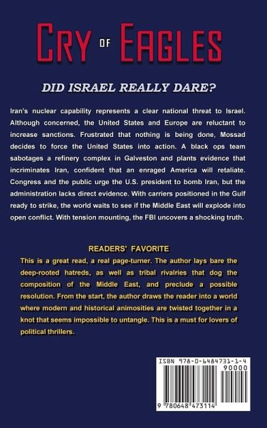 Iran’s nuclear capability represents a clear national threat to Israel, but the United States and Europe do nothing. A Mossad black ops team sabotages a refinery complex in Texas City, plants evidence that incriminates Iran, confident that an enraged America will strike back in retaliation. But the Mossad team makes one small mistake, which the FBI exploits to uncover the plot before America vents its wrath on Iran and plunges the world into political and economic turmoil. An award-winning thriller that will leave you at the edge of your seat.
