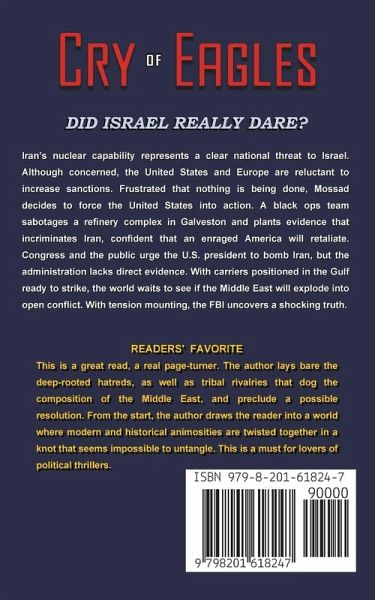 Where no counsel is, the people fall, but in the multitude of counselors there is safety." Proverbs XI/14 ... Mossad motto What if there is no safety? What if the person meant to provide counsel acts alone, bringing the United States to the edge of war with Iran, supposedly to protect Israel's security? That is exactly what Namir Bethan, Director of Metsada does. The United Nations and America are sitting on their hands while Iran expands its nuclear program. The Kadima Party coalition government is pursuing appeasement, unwilling to do the correct thing-bomb Iran's nuclear facilities like they did with Osirak. Matan Irian, a former Army Colonel, presents a devastatingly simple plan: sabotage a refinery complex in Texas City, plant evidence that incriminates Iran, and sit back while an enraged United States strikes back in retaliation. The plan is meticulously executed and the President positions two carrier battle groups off Iran's coast in readiness to hit back. But Matan Irian makes one small mistake, his team leaves behind a tiny piece of evidence which the FBI forensic investigator traces back to Israel. The President's rage is now turned on an ally and demands that Israel finally acts to recognize the Palestinian's right to exist in a State of their own. The Israeli Prime Minister rejects the American demands as naive and simplistic, accusing the President of not understanding the complexities faced by Israel in such a settlement. When the President withdraws all economic and military aid, the Israeli government falls. Israel is faced with a cruel choice: seek peace with the Palestinians or maintain an untenable war-ostracised by the global community.