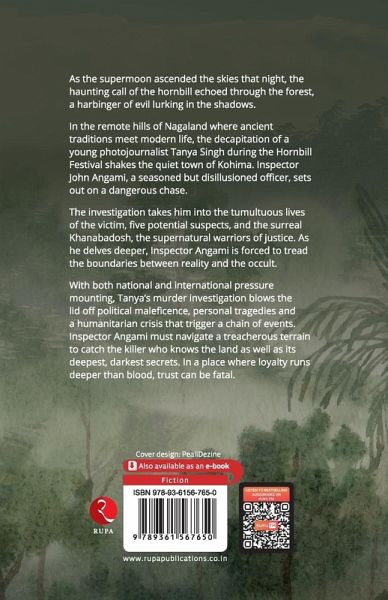 As the supermoon ascended the skies that night, the haunting call of the hornbill echoed through the forest, a harbinger of evil lurking in the shadows. In the remote hills of Nagaland where ancient traditions meet modern life, the decapitation of a young photojournalist Tanya Singh during the Hornbill Festival shakes the quiet town of Kohima. Inspector John Angami, a seasoned but disillusioned officer, sets out on a dangerous chase. The investigation takes him into the tumultuous lives of the victim, five potential suspects, and the surreal Khanabadosh, the supernatural warriors of justice. As he delves deeper, Inspector Angami is forced to tread the boundaries between reality and the occult. With both national and international pressure mounting, Tanya's murder investigation blows the lid off political maleficence, personal tragedies and a humanitarian crisis that trigger a chain of events. Inspector Angami must navigate a treacherous terrain to catch the killer who knows the land as well as its deepest, darkest secrets. In a place where loyalty runs deeper than blood, trust can be fatal.