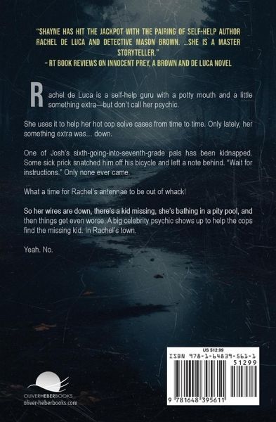 A short, riveting thriller that resets you in the Brown and de Luca Universe just in time for book 7, GIRL BLUE. "Shayne has hit the jackpot with the pairing of self-help author Rachel de Luca and Detective Mason Brown. ...she is a master storyteller." -RT Book Reviews on Innocent Prey, a Brown and de Luca Novel Hey, I'm Rachel and just so you know up front, I've got a mouth on me. Not in public-when I can help it. Cussing is bad for the image of a bona fide guru of self-help, or that which I call "the bullsh*t I write." Only, I'm not so sure it's bullsh*t, because in trying it out, I got my eyesight back after 20 years. Yeah, the corneal tissue came from a serial killer, and yeah, I started seeing his crimes. But still, eyesight. I also have the hottest detective in the universe attached to my proverbial-and, okay, wider than I'd like-hip. I got his 2 nephews with the package and I couldn't fu-freaking love Jeremy and Josh more if I was their mother, which I'm way too young to be. That's a lie, Rache. They're twelve and eighteen. You're thirty- Don't interrupt, Inner B*tch, I'm on a roll. I also have my amazing bulldog, Myrtle. I understand her. She's blind like I used to be. And I got a little something extra with my cornea transplant. "It's a blessing and a curse," said the greatest TV detective ever. Only my something extra was...let's say down. And one of Josh's sixth-going-into-seventh-grade pals has been kidnapped. The sick prick snatched him off his bicycle and left a note behind. "Wait for instructions." Only none ever came. What a time for my antennae to be out of whack! So my wires are down, there's a kid missing, I'm bathing in my pity pool, and things get even worse. A big celebrity psychic shows up to help the cops find the missing kid. In my town. Yeah. No. So there's all that. But I'm out of room, so...just get the book, and I'll tell you the rest. # "This is page-turning, non-stop suspense at its finest." -RT Bookclub on Deadly Obsession, A Brown and de Luca Novel