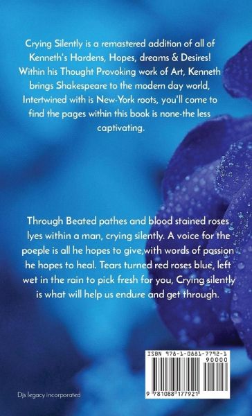 In this book we will take a look at Mr.Hardens life experiences and look into a world that Kenneth Harden have encountered with merging his gift of poetry. Mr. Harden poetry is mainly to influence and inspire individuals, fans, fellow writers and or poets. In this you will also feel the pain, disappointment and struggle as well through his eyes and the tough times he's endured. Crying silently was drafted and created to enlighten as also to entertain the reader with great lyrics and of words that he has incorporated of such originality.