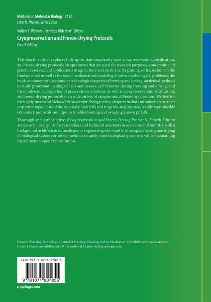 Thorough and authoritative, Cryopreservation and Freeze-Drying Protocols, Fourth Edition serves as an ideal guide for researchers and technical assistants in academia and industry with a background in life sciences, medicine, or engineering who want to investigate freezing and drying of biological systems or set up methods to safely store biological specimens while maintaining their function upon reconstitution.