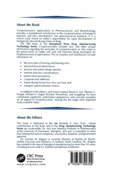 This book covers the principles of cryopreservation as they relate the preservation of viable cells and cell materials being developed for biopharmaceutical applications. Topics include: the principles of freezing and thawing cells, physiochemical phenomena, process and system design options, method selection considerations, preservation procedures, cryoprotectant additives, freeze-drying human live virus vaccines, and transport system selection criteria. Contributions from well-known experts such as Steven S. Lee, Thomas C. Pringle, William H. Siegel, Richard Wisniewski, and Fangdong Yin make this the single most important study available.