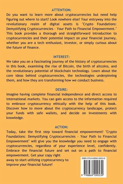 Welcome to "Crypto Foundations: Demystifying Cryptocurrencies - Your Path to Financial Empowerment." In this e-book, we set out on a quest to solve the mysteries around cryptocurrencies to give you a thorough grasp of this groundbreaking financial phenomenon. Cryptocurrencies have revolutionized the world of money by creating a decentralized, secure, and borderless method of conducting financial transactions. These digital assets, which were created due to the brilliance of blockchain technology, have disrupted established financial systems and attracted the interest of businesspeople, investors, and ordinary individuals. This e-book aims to give you the information and assurance you need to navigate the cryptocurrency landscape properly. This e-book will meet your needs whether you are a total novice looking for fundamental clarification or a seasoned investor looking to improve your techniques. We start our voyage by investigating the background and inception of cryptocurrencies, tracing their development from a purely theoretical notion to a major worldwide financial power. Understanding the history of cryptocurrencies can help to put their influence on the current financial landscape in perspective.