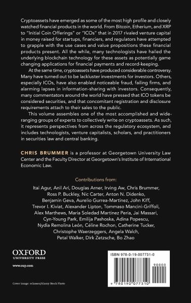 Cryptoassets represent one of the most high profile financial products in the world, and fastest growing financial products in history. From Bitcoin, Etherium and Ripple's XRP-so called "utility tokens" used to access financial services-to initial coin offerings that in 2017 rivalled venture capital in money raised for startups, with an estimated $5.6 billion (USD) raised worldwide across 435 ICOs. All the while, technologists have hailed the underlying blockchain technology for these assets as potentially game changing applications for financial payments and record-keeping. At the same time, cryptoassets have produced considerable controversy. Many have turned out to be lacklustre investments for investors. Others, especially ICOs, have also attracted noticeable fraud, failing firms, and alarming lapses in information-sharing with investors. Consequently, many commentators around the world have pressed that ICO tokens be considered securities, and that concomitant registration and disclosure requirements attach to their sales to the public. This volume assembles an impressive group of scholars, businesspersons and regulators to collectively write on cryptoassets. This volume represents perspectives from across the regulatory ecosystem, and includes technologists, venture capitalists, scholars, and practitioners in securities law and central banking.