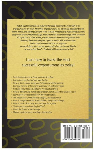 WHY WOULD YOU READ THIS BOOK? Not all cryptocurrencies are useful neither good investments, in fact 90% of all cryptocurrencies are scam. Many fake cryptocurrencies are advertised parallel with well known names, and existing successful coins, to make you believe to invest. However, many people lose their hard earned savings, because of their lack of knowledge about the world of Crypto. Due to a free market, we also experience market manipulation daily. However, there are some great cryptocurrencies with excellent ideas. It takes time to understand how to recognize a successful digital coin, that has a potential to become the next Bitcoin... ...so how to find them? - This book will teach you exactly that! IN THIS BOOK YOU WILL LEARN: * Technical analysis by volume and historical data * Learn about the best privacy based coins * How to do Company background checks and Vetting process * Learning the size of the marketplace and it's potential needs * Find out about the best platforms for smart contracts * How to differentiate market capitalization, volume, and the value of a coin * Learn about the best blockchain based applications * The Importance of marketing strategies, and appearance * How to recognize market manipulations, and pump & dumps * How to track a Road map and future projects plans * Should you pursue investing in ICO-s? * Grasp the future of data storage * Master cryptocurrency investing, step-by-step
