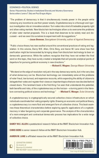 This book investigates the theoretical and practical implications of blockchain and other distributed ledger technologies for democratic decision making. The authors examine theoretical characteristics before exploring specific applications of cryptodemocracy in labor bargaining and corporate governance.