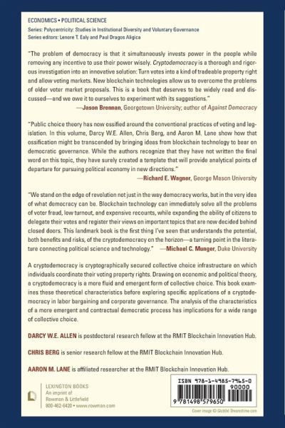 This book investigates the theoretical and practical implications of blockchain and other distributed ledger technologies for democratic decision making. The authors examine theoretical characteristics before exploring specific applications of cryptodemocracy in labor bargaining and corporate governance.