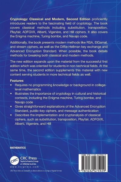 The new edition expands upon the material from the first edition which was oriented for students in non-technical fields. At the same time, the second edition supplements this material with new content that serves students in more technical fields as well. Thus, the second edition can be fully utilized by both technical and non-technical students at all levels of study. The authors include a wealth of material for a one-semester cryptology course, and research exercises that can be used for supplemental projects. Hints and answers to selected exercises are found at the end of the book.