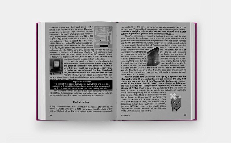 With an in-depth interview between Hans Ulrich Obrist (Artistic Director, Serpentine Galleries) and CryptoPunks founders Matt Hall and John Watkinson, this cult and category-defining book features a kaleidoscopic collection of texts, interviews, and visual essays exploring this emerging world of web3 and digital culture at large inspiring a first wave of visual books on this groundbreaking subject.