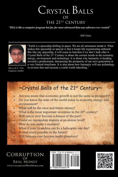 Earth is a spaceship drifting in space. We are all astronauts inside it. What makes this spaceship so special is that it keeps life regenerating onboard. But like any spaceship, it will cease to function if we don't look after it. Crystal Balls of the 21st Century is about the current trends in the economy, energy, environment and technology. It is about why humanity is heading towards a predicament, threatening the prosperity of our next generation at a very limited timeframe. It is also about about how humanity will use technology to reverse that and recreate a world worth inheriting.