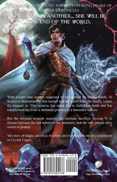 One way or another... she will be the end of the world. With powers that weren't supposed to be touched by mortal hands, Vi Solaris is determined to free herself and the world from the deadly vortex it's trapped in. This mission has taken her to forbidden lands and has transformed her from a sheltered princess to a fearsome warrior. But the ultimate triumph requires the ultimate sacrifice, forcing Vi to choose between the last tethers to her humanity and the very people she's sworn to protect. Vi's story of magic, sacrifice, triumph, and love reaches its epic conclusion in Crystal Caged.